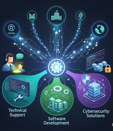 Cell de Analítica & BI con IA: Se especializa en transformar grandes volúmenes de datos en dashboards en tiempo real y modelos predictivos.Cell de Ciberseguridad inteligente: Integra expertos humanos con IA para detectar y responder proactivamente a amenazas de seguridad.